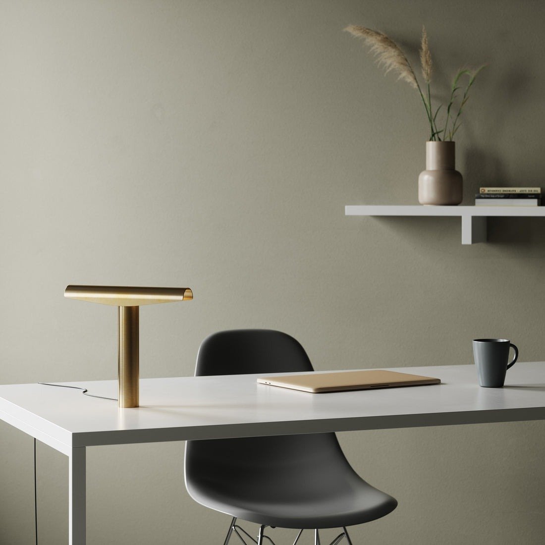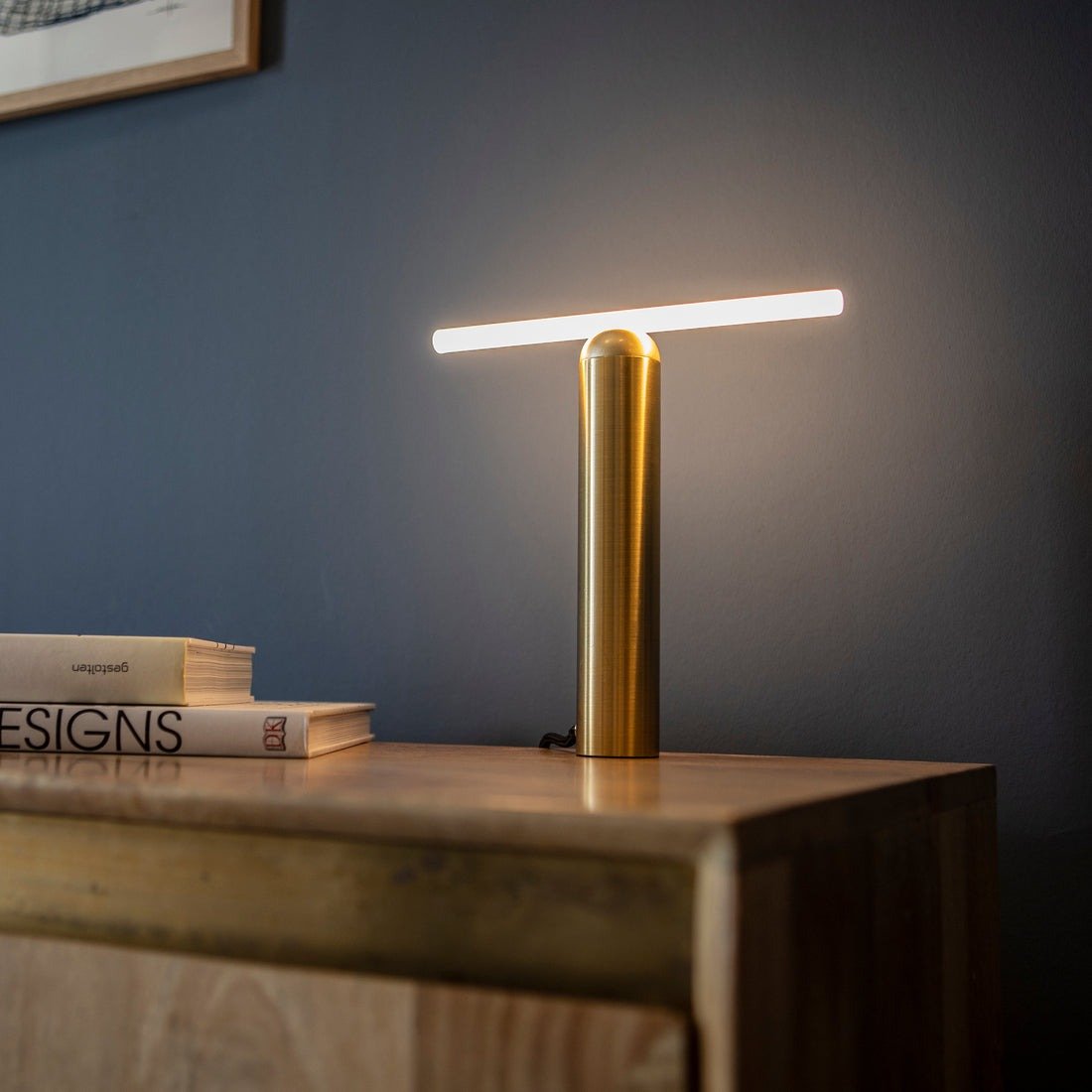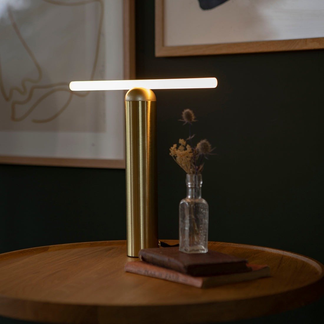 This table lamp has a luxurious brushed brass finish.